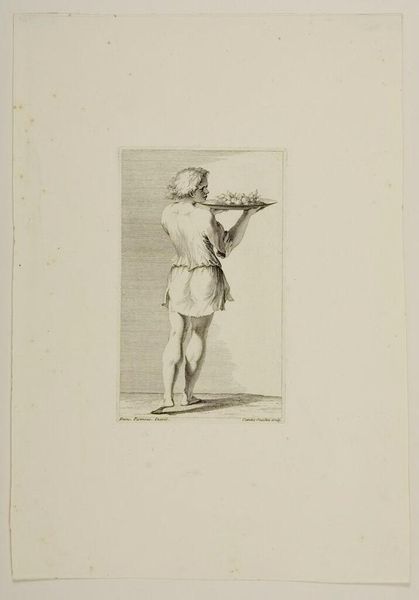 Editor: So, this is Carlo Gregori's "Cupid and Psyche," housed at the Harvard Art Museums. It has a very classical feel, like a rendering of a Greco-Roman sculpture. What strikes you about the composition? Curator: The linear precision is paramount. Observe how the engraver meticulously renders the texture of the stone and how the artist directs the eye to appreciate the interplay between light and shadow. It's a testament to the artist's control of line and form. How do you perceive the negative space around the figures? Editor: I didn’t think of that, but the emptiness really isolates the figures. The lack of context makes it feel very formal and timeless. Thanks! Curator: Indeed. And that deliberate emptiness forces us to engage with the fundamental essence of the figures themselves. A valuable lesson in reduction.