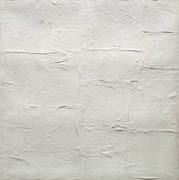 Curator: This is Piero Manzoni's "Achrome," currently residing at the Tate. The date is unconfirmed, but Manzoni was working on similar pieces throughout his career. Editor: Its pale, almost clinical surface is quite striking. The grid structure imposes an order, yet the material seems to fight against it. Curator: Manzoni sought to reduce painting to its essence, challenging traditional notions of art. This piece uses texture to create visual interest, questioning the necessity of color. Editor: It evokes a sense of emptiness, perhaps a reflection of the existential anxieties of the postwar era. The Achrome series was produced amidst a period of cultural reevaluation. Curator: The lack of color and the emphasis on materiality invite a re-examination of what constitutes a work of art. I find its simplicity compelling. Editor: Absolutely, it pushes the boundaries of our aesthetic expectations and forces us to confront our own perceptions of value and meaning. Curator: It provides a unique and important contribution to the discourse surrounding art and its role within society. Editor: Indeed, Manzoni’s work still resonates with its radical simplicity.