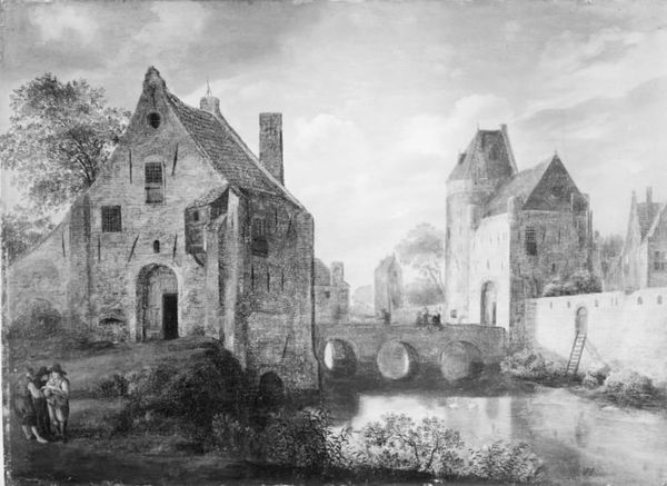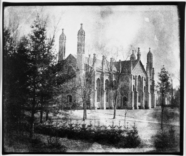 Editor: Frederick Landseer Maur Griggs’ "Brede Place" presents this imposing manor in stark black and white. It feels almost like a stage set, ready for a gothic drama. What cultural narratives do you see embedded in this image? Curator: The building itself speaks of enduring power and the weight of history. Do you notice the deliberate use of vertical lines, how they draw the eye upward? Editor: Yes, it makes the building seem even taller and more imposing. Curator: Exactly. This visual language evokes a sense of aspiration, perhaps even a yearning for a bygone era of stability and order. Consider the visual echoes of medieval cathedrals. What do you feel when you compare them? Editor: That's interesting; there's a similar sense of grandeur but maybe with a bit of romantic melancholy. Curator: Indeed. The image invites reflection on how we idealize the past, while simultaneously acknowledging its inevitable decay. Editor: I hadn't considered the melancholy aspect so strongly. It certainly gives the artwork a new dimension.