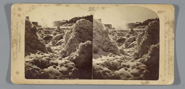 Curator: This photograph by John L. Dunmore captures an iceberg as seen in Melville Bay in July. The tones and scale give it such a stark presence. Editor: It does evoke a sense of isolation, doesn’t it? I wonder about the colonial gaze here—documenting the Arctic as a resource to be exploited. Curator: Exactly. Consider the materiality of the photograph itself, the paper, the chemicals used. These are all products of industry, of a globalized economy that’s literally melting these icebergs. Editor: And who had access to these images? It highlights the power dynamics at play, shaping perceptions of the Arctic and its people. It's a statement about what it means to document and categorize nature. Curator: Indeed. The very act of photographing becomes an act of possession, of imposing a certain order. Editor: Ultimately, it makes me question what's been gained and lost. Curator: It's a potent reminder of the complex and often destructive relationship between humans and the environment.