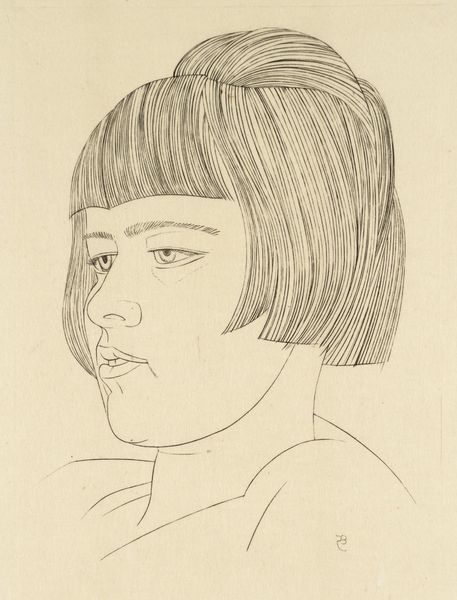 Curator: Here we see Han van der Kop's "Fotoreproductie van een portret van Mida," made sometime between 1933 and 1960 using pencil on paper. Editor: The drawing exudes a delicate stillness. The muted tones and careful linework evoke a profound sense of melancholy, as if the subject carries a weight beyond her years. Curator: Indeed, portraiture often carries the weight of capturing not just likeness, but also the sitter's perceived inner state and place in the world, especially concerning social class. Editor: I'm particularly drawn to the subtle gradations achieved with the pencil. The way van der Kop builds up the shadows around the eyes and along the jawline, you can see a life here. I wonder what kind of pencils he might have used to reach these tones. Curator: Consider too the bob haircut and dress of Mida in conjunction with the inscription which tells us the work was sketched in September of 1933; we can deduce, I think, something about both sitter and artist—that Mida represents the modern girl in interwar Europe, the cutting edge. Van der Kop, like so many, captured those fraught years between two wars. Editor: Looking at the texture of the paper, it seems as if a standard, commercially-made material. Does the paper choice point to considerations around the accessibility and affordability of art during that period? Was he working on commission or sketching from a photograph? Curator: That tension between capturing an ideal while grappling with economic constraints resonates profoundly. He’s trying to immortalize youth through both traditional portraiture, realism even, but within the trappings of a certain kind of mass media production...it hints at larger social trends. Editor: And that tension infuses the portrait itself. The somberness almost contradicts the newness or modern "youth" you speak of; she looks like an old soul in a freshly designed package, really a remarkable thing to see and sense across all these years. Curator: Absolutely. I feel that in this portrait we see art holding memory, making visual an entire mood and aesthetic approach of those decades. Editor: For me, it’s an intriguing example of how the humble pencil and paper could become a conduit to evoke so many lives, lost and remembered.