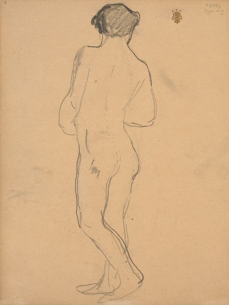 Editor: Here we have Jozef Israëls's "Schets van een naakt kind", a pencil drawing dating from sometime between 1834 and 1911. There's something so vulnerable in this quick sketch of a nude child. What strikes you when you look at this piece? Curator: The child's anonymity is powerful. The lack of facial features forces us to confront broader societal attitudes towards childhood in the late 19th century. How do you think the emerging realist movement impacted portrayals of children at this time? Editor: Well, maybe the Realists sought to move away from idealized or romanticized versions and focus on the everyday realities? Curator: Exactly! Realism, with its focus on truth and objectivity, challenged earlier sentimental depictions. This sketch, while incomplete, perhaps suggests a turn towards a more truthful representation of the human form, even in childhood. Was there a market for this type of work? Or would the artist create these only to refine their style? Editor: Good question. Since it is a sketch, my guess is it wasn’t meant for public consumption. How do sketches function in an artist's practice? Curator: Sketches are vital. They allow artists to explore form, light, and composition privately, free from the constraints of the market or public opinion. This freedom could, in turn, lead to more honest and groundbreaking work. Editor: So this drawing might have allowed Israëls to grapple with new ways of representing the body without the pressures of societal expectations? Curator: Precisely. It serves as a window into his artistic process, revealing the socio-political forces shaping his creative choices. I see so much in such simple art, don’t you think? Editor: Definitely. It’s fascinating to consider how even a sketch like this can reflect larger cultural shifts.