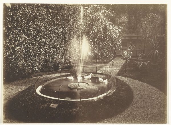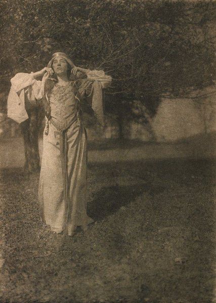Curator: Ah, Clarence H. White’s "The Fountain," circa 1905-1906. Found here at the Art Institute. Funny, isn’t it? A photograph aspiring to be… a painting? Editor: Yes! It has a wonderfully soft focus and that delicate, almost dreamlike quality. The composition, with the woman by the fountain and the figures in the background, creates this quiet, introspective mood. What do you see in this piece, beyond the surface beauty? Curator: Beyond? Well, darling, I see White yearning for something more, something deeper. Pictorialism was all about elevating photography to art, right? But it wasn’t just about fuzzy edges and romantic light. Look at her. That pensive figure by the fountain – she's contemplating something. Perhaps it's the passage of time, the elusiveness of beauty, the very nature of being… Editor: It's interesting you say that because the water evokes this constant movement and change while she's frozen in thought. It creates a feeling of tension. Curator: Exactly! Think of those soft tones, that platinum print shimmering like a memory. It whispers of summers past, of whispered secrets and stolen glances. It's a fragile beauty, isn't it? Vulnerable, ephemeral. It reminds me of looking through my grandmother's photo album; those fleeting moments of clarity within a sea of faded memories. It makes me wonder, what future memories is the subject making, here in the fountain’s aura? Editor: It definitely has that personal connection. This was very insightful. Thanks so much! Curator: My pleasure! Art like this should stir something within us, don’t you think? A longing, a question, perhaps just a sigh of recognition.