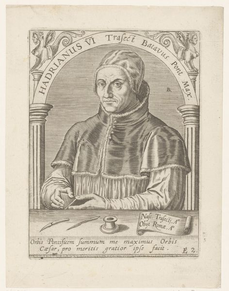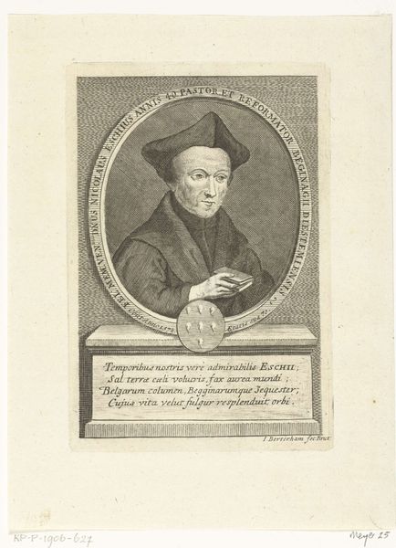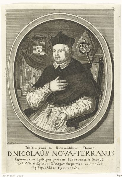 Editor: This is an engraving titled "Portret van kardinaal Niccolò Fortiguerra" by Gaetano Vascellini, created sometime between 1755 and 1805. It strikes me as very formal and classical. What's your read on it? Curator: Oh, it certainly has that poised formality, doesn’t it? It’s interesting how the stark lines of the engraving, coupled with the subject’s serious gaze, evoke a sense of power and authority, but with a certain introspective vulnerability, almost. Have you ever felt the weight of history pressing down on you just by looking at someone's face? This print captures that perfectly for me. Editor: Introspective vulnerability? That's not quite what I got. The symbols of the cross and cardinal attire made me see authority first. Is it the details in the face that bring you to that conclusion? Curator: Precisely! It's in the subtle lines around his eyes, perhaps, and the slight downturn of his lips. Makes you wonder what inner turmoil, doubts, or reflections simmered beneath the surface of that prominent position. These portraits, for me, are more than just depictions. They're ghosts whispering stories. It feels almost like getting to rummage through the attic of the past, wouldn't you agree? Editor: I think I'm beginning to see what you mean about the subtleties. Considering how meticulously detailed engravings were, you’d have to consciously decide to include those elements, right? Curator: Absolutely. There’s intention, reflection, and a quiet story waiting to be unfolded, not just in what’s boldly displayed, but what’s artfully hidden. You begin to look deeper, and that’s where the fun really starts! Editor: This makes me think about portraits completely differently. Thanks! Curator: My pleasure. Always lovely to peel back the layers together!
