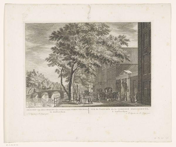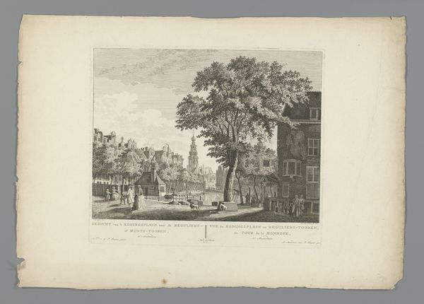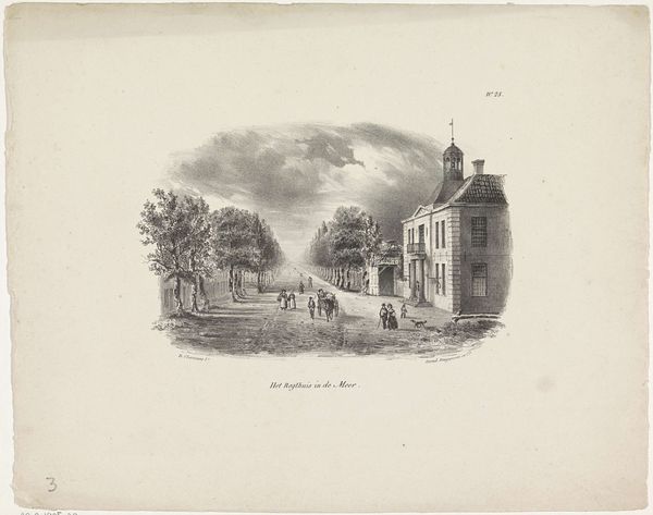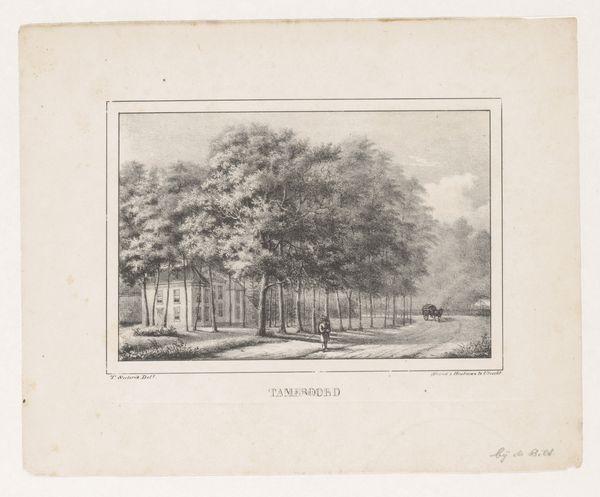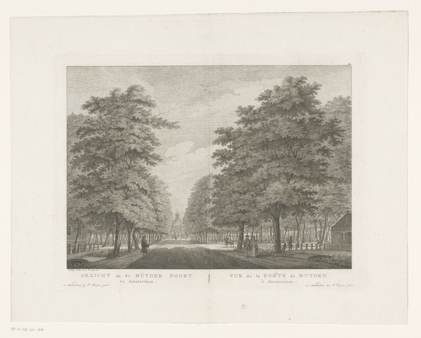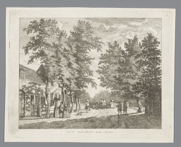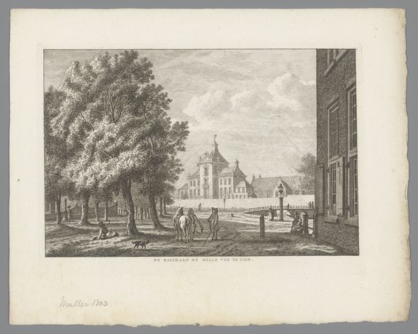 Editor: This is "Gezicht op buitenplaats Knapenburg" by Petrus Josephus Lutgers, made sometime between 1837 and 1844. It's an etching or engraving, a print. The scene is so peaceful, almost idealized. What do you see in it? Curator: I see more than just a peaceful landscape. The piece presents a carefully constructed image of rural life, but what does it conceal? Think about the Dutch colonial empire at this time. Whose labor funded these idyllic estates? Where are they in this picture? Editor: That's a perspective I hadn't considered. I was focused on the aesthetic beauty and the technique. Are you suggesting that landscapes like this can be a form of propaganda? Curator: Precisely! By showing only the beauty and serenity, it obscures the social and economic realities upon which that lifestyle was built. Who benefits from this specific representation of Knapenburg? And who is excluded? Editor: So, looking at the figures in the foreground, are they representative of everyone who lived and worked there, or is this a selective portrayal? It makes me wonder about the absence of enslaved people or indentured servants who might have been part of that landscape. Curator: Exactly. This image performs a very specific type of work, legitimizing a certain social order. It encourages us to appreciate the aesthetics while discouraging critical inquiry into the structures of power. Editor: That makes me see the artwork in a completely new light. I appreciate you connecting art history with those kinds of social theories. Curator: It’s crucial to examine how art can reinforce existing power structures, and conversely, how it can be used to challenge them. Art doesn't exist in a vacuum.