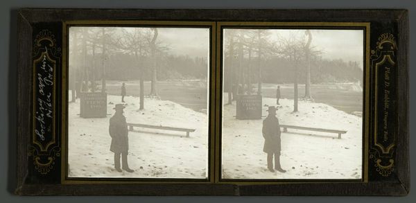 Curator: Robert Frank's gelatin silver print, "Man Sweeping Snow from Sidewalk, Paris," created in 1951, presents a captivating moment frozen in time. Editor: It's undeniably bleak, isn’t it? That muted palette, the solitary figure…there's a sense of profound isolation despite the Parisian setting. Curator: Precisely! Notice how the composition guides our eye: the rigid verticality of the snow-laden trees, balanced by the horizontal sweep of the worker's broom and the wrought iron fence. The lines create a spatial harmony that underpins the narrative. Editor: But that "narrative" you speak of also underscores a social reality. The image evokes the toil and labor of the working class. That anonymous figure could represent countless individuals marginalized in the postwar recovery. How does the artist confront this tension? Curator: I believe it’s the contrast he creates within the geometric framework. The organic, almost chaotic shapes of the snow-covered branches play against the geometric lines, mirroring the tension between nature and civilization, freedom and constraint. Editor: And does the snow itself function as a metaphor here? Is it just backdrop or a symbol? It obscures, isolates, but it can also cleanse, promising renewal. Is Frank commenting on Paris emerging from a period of great upheaval? Curator: A potent observation! The snow functions on both a visual and symbolic plane. Its tonal range contributes to the print's textural complexity while simultaneously alluding to broader historical anxieties and aspirations. Editor: The enduring relevance of this image perhaps lies in its ability to reveal a confluence of formalism and historical commentary—it seems so minimal yet manages to speak volumes about city life, class, and even resilience. Curator: Absolutely. Frank's masterful use of form enriches our understanding. It invites the observer to contemplate the beauty of the city alongside its starker, less romantic realities.