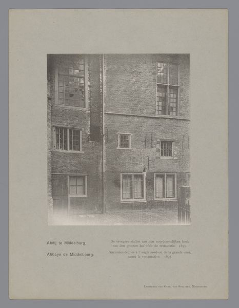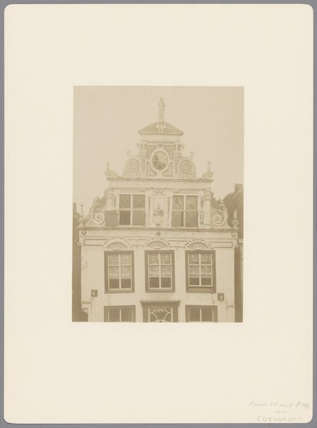 Editor: So, here we have "Gezicht op een kantoorgebouw aan de Groenmarkt in Dordrecht," a photograph from 1896 currently held at the Rijksmuseum. It’s a simple depiction of a building, but I’m struck by how it manages to feel both grand and oddly mundane at the same time. What catches your eye in this image? Curator: What interests me immediately is the seemingly straightforward nature of this image. But let’s consider the rise of photography as a documentary tool in the late 19th century. This photograph isn’t just capturing a building; it’s participating in a broader cultural project of defining and classifying urban spaces and architecture. Editor: That's interesting. So, the act of documenting becomes significant itself? Curator: Precisely. Photography was becoming increasingly important for city planning, legal records, and even promoting civic pride. What do you think that says about the status or intended audience of the work? Was this commissioned? Did it promote the architect's skill or celebrate the city? Editor: Hmm, good point. Maybe it was intended for some sort of official archive? Or possibly as a way for the architect to showcase his work to potential clients? Curator: Indeed! Also, think about the power dynamics embedded in the act of photographing. Who had access to this technology, and whose perspectives were being recorded and preserved? And how this access may shape society's perceptions and architectural styles. Editor: I hadn't thought about it that way, I'm beginning to see how much a single image can tell us! Curator: It is crucial to understand these images not as neutral records but as constructed representations with their own social and political contexts. Looking at its cultural landscape teaches more than architectural appreciation, would you agree? Editor: Absolutely! It definitely changes my perception of the piece, seeing it as an active participant in shaping how we view the urban landscape. Thank you.