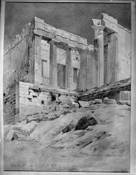 Editor: So, here we have Konstantin Bogaevsky's 1909 pencil drawing, "View of the Ancient Greek Acropolis." There's something stark and fragmented about it. What catches your eye when you look at it? Curator: Well, I am drawn to the medium itself, the pencil, and the way it’s used. Think about what a pencil is: graphite mined and processed, wood carefully shaped, then applied to paper, also manufactured. This drawing, it's not just a representation of a classical site, but the endpoint of multiple industrial processes. Editor: That's a different take! I was focused on the ruins themselves, the subject of the image. Curator: The "ruins" are central, but let's think about them as material too, products of human labor. They weren’t always ruins. What was the social structure that enabled the quarrying of marble, the carving of those columns? How were the raw materials transported, assembled? Editor: So you’re less interested in the romantic ideal of Ancient Greece and more in the labor behind the aesthetic? Curator: Precisely! And also in Bogaevsky's labor. What did it mean to *draw* these ruins in 1909, in the shadow of industrialization? Was it a yearning for a pre-industrial past, or a commentary on the relationship between past labor and present modes of production? Editor: It's fascinating to think about the layers of production involved – from the ancient construction to the creation of the artwork itself. I see the drawing, but I never thought about it being made of materials, processes. Curator: Exactly. And that perspective shifts our understanding, doesn't it? It encourages us to see art not as some ethereal creation, but as the result of concrete material conditions and human effort across time.