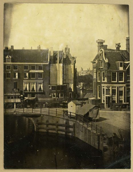 This albumen print of the Botermarkt in Leiden was made by Jan Goedeljee, sometime in the mid-19th century. Produced by coating paper with an emulsion of egg white and silver nitrate, this process would then be exposed to light through a negative, creating a finely detailed image. The resulting photograph is then fixed, washed, and mounted. Notice the tonal range, which is warm and subdued, characteristic of albumen prints. The process creates a sense of depth and texture, visible in the architectural details and the reflections on the canal. This technique was extremely popular during this time, and the final product acted as a portable and reproducible image that changed the way people viewed the world. The labor and time invested in producing albumen prints speaks to the value placed on capturing and preserving visual information, reflecting broader shifts in society related to industrialization, commerce, and the rise of visual culture.