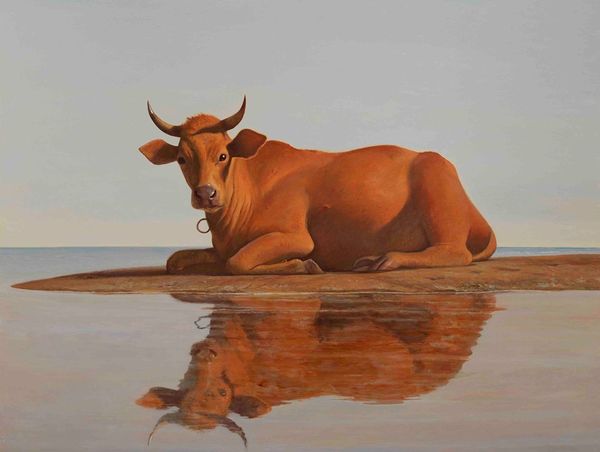 Eric Fischl’s painting, Corrida in Ronda No. 4, captures a moment steeped in Spanish tradition and fraught with questions of power. Fischl, working within a contemporary lens, approaches the bullfight, or corrida, as a staged spectacle that reveals as much about culture as it does about life and death. The composition is stark: a fallen bull with a banderilla in its back lies defeated, its gaze meeting the viewer's. Across from it, a matador stands in ornate dress, holding a red cape. The arena, rendered in ochre hues, heightens the tension. Corrida in Ronda No. 4 refuses to shy away from the emotional complexities embedded in this ritual. Fischl invites us to consider our own relationship to spectacle, suffering, and the stories we tell about masculinity and dominance.