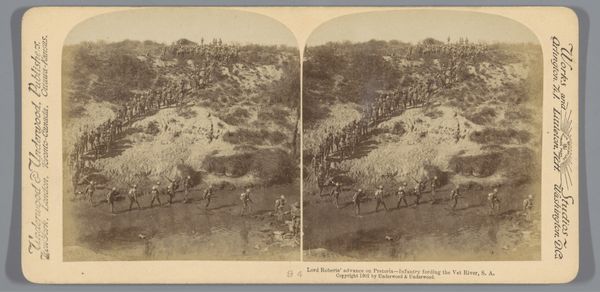This stereograph, made around 1900 by an anonymous photographer, shows Lord Roberts' infantry crossing the Sand River in South Africa. The image, mass-produced by Underwood & Underwood, speaks volumes about the British Empire's self-image and its projection of power. Consider the composition: the vast landscape, the orderly lines of soldiers, and the surveillance balloon overhead. These visual elements construct a narrative of control, modernization, and military might. The photograph was taken during the Second Boer War, a brutal conflict fought over control of South Africa's rich resources. Stereographs like this one were popular forms of entertainment and education, shaping public opinion about distant lands and colonial ventures. They present a sanitized view of war, eliding the violence, suffering, and resistance inherent in the colonial project. To fully understand this image, we need to consult historical archives, military records, and accounts from both sides of the conflict. The image can be a powerful reminder that art and photography are always embedded in social, political, and institutional contexts.