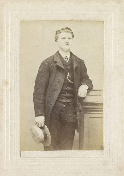 This portrait of Ludwig Nopper was made using a photographic process that emerged in the 19th century. The image, rendered in sepia tones, speaks to the industrialized processes of early photography, where light-sensitive chemicals and standardized methods allowed for relatively quick and inexpensive production of portraits. The subject’s attire and pose, captured through careful arrangement and lengthy exposure times, reflect the era’s social codes and aspirations. The clothing indicates a degree of social standing, yet the photograph's small size and mass-producible nature also suggest a democratization of portraiture, making it accessible to a broader segment of society. Understanding this photograph requires us to consider both the artistry involved in composition and the industrial processes that made it possible. It highlights the shift towards mechanical reproduction that began to transform artistic practices and consumption habits, challenging the traditional boundaries of art and craft.