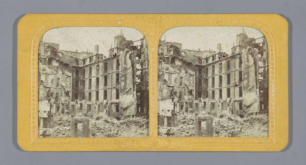 Charles Dauvois captured this stereoscopic image of the ruins of the Palace of Saint-Cloud near Paris in 1871. The skeletal remains of the palace speak volumes, a potent symbol of the ephemerality of power and the cyclical nature of destruction and rebirth. Consider the motif of ruins throughout art history: from Piranesi's etchings of Roman antiquities to Romantic paintings depicting crumbling castles. These images evoke a sense of melancholy but also a recognition of the transience of human achievement. Here, the ruined Palace of Saint-Cloud, once a symbol of imperial grandeur, lays in desolation. This destruction echoes the ancient symbol of the 'Uroboros' or snake eating its tail – destruction is intrinsically linked to renewal. The bombed-out palace is not just an end, but also the harbinger of a new beginning. A potent reminder that history is not linear but a continuous cycle of creation, destruction, and recreation.