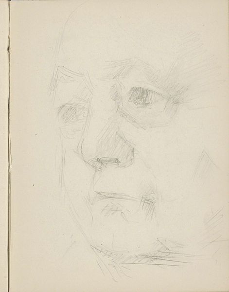 Reijer Stolk made this drawing, Kop, with graphite on paper, but when is anyone's guess. The lines are so tentative and searching, aren’t they? You can almost see him feeling his way around this face. Look closely at how Stolk renders the nose with just a few quick strokes, like a shorthand for a nose. It’s all about suggestion, not description. The eyes, too, are just hinted at, closed or perhaps gazing inward. The texture of the paper adds a subtle graininess to the drawing, emphasizing its raw, immediate quality. It's as if Stolk is saying, "Here's a face, but it’s also just a bunch of lines on paper." This kind of openness reminds me of work by Guston, who also embraced the raw, imperfect mark as a way to get closer to some kind of truth. And isn't that what art is all about, this constant conversation, this endless exploration?