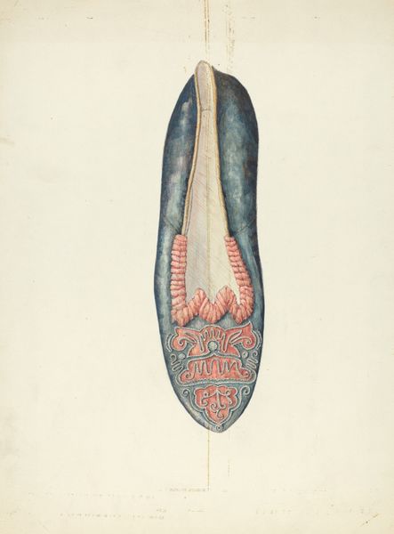 William Kieckhofel made this watercolour on paper Evening Slipper some time between 1855 and 1995. The colour palette is muted, like a faded memory, blue grey and rose. It's as if it came from a dream. The texture of the slipper looks soft, almost velvety, and the artist has carefully rendered the way light falls on the fabric, giving it a three-dimensional quality. You can see the individual strokes of the brush in the subtle variations of colour across the surface, so the making is really on show. The rose coloured embroidery at the front is especially delicate, with intricate swirling patterns. It reminds me of the elaborate details you might find in an illuminated manuscript. The slipper appears weightless and ethereal, like something from another time, but also, it reminds me of some of Manolo Blahnik's sketches, and how the design of a shoe can also be a kind of portrait.
