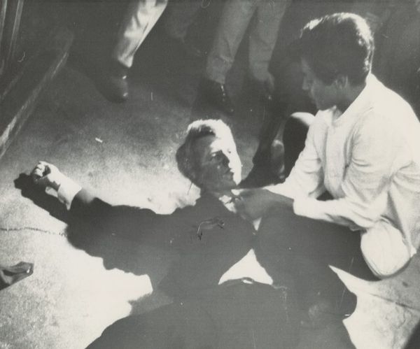 Curator: This compelling image is Ilse Bing’s "Poverty in Paris," captured in 1931 using a gelatin silver print. There’s a raw, unfiltered quality that immediately grabs your attention. Editor: Yes, the starkness is arresting. It feels somber, almost claustrophobic. The limited depth of field throws the viewer right into the midst of this anonymous interaction. Curator: Let's look closely at the material details. Bing focuses our gaze downward. We see a figure hunched over a parcel on the street. Notice the rough texture of his clothes, and the makeshift nature of the wrapped package. These elements suggest a level of resourcefulness born of necessity. What was it like to make a silver gelatin print back then, I wonder, and how much was it manipulated, how much is indexical. Editor: Exactly. And what about the broader societal implications of focusing on such a vulnerable subject? The work, titled "Poverty in Paris," was produced during the interwar period—a moment riddled with economic anxiety. It pushes us to confront issues of class, visibility, and who gets represented, how. It invites you to think about access and the role media had to play at the time. Curator: The composition too emphasizes labor and struggle. The man’s hands, the patched jacket – these become crucial components, telling a story about how one survives under constrained conditions. What do you think this material package contains? The surface of the image suggests paper of some sort. Editor: Food, perhaps? Or other gathered scraps from which to extract a meager livelihood. What strikes me most is the lack of faces and the faceless system which fosters inequities such as this, one in which those struggling become further unseen and disappear as their identity becomes stripped away. Curator: This also points to how photography as a medium had to come to terms with its responsibility as a producer of knowledge. Was this image meant to reveal poverty or merely present its surface to be consumed? This work embodies realism's challenge, showing but not judging. Editor: It forces a degree of self-reflection; about our assumptions. In what ways does the act of photographing a subject such as this shift, distort, or reproduce prevailing dynamics? Curator: Absolutely. Bing’s work demonstrates a crucial balance. We must examine both its means of production and understand the broader social, ethical implications of bearing witness to subjects such as the one we have before us. Editor: I find myself questioning if this person's existence has improved or degraded over the last 100 years. Food for thought...