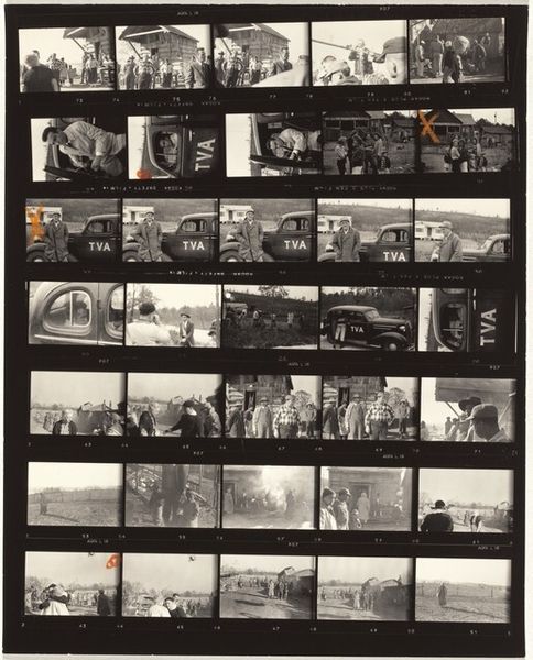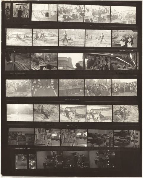 This is Robert Frank's contact sheet, ‘Allan Kaprow’s party 4'. It’s a photographic print – a series of small images arranged on a single sheet. What strikes me is the texture. Not just in the grainy black and white of the photos themselves, but in the way the sheet is held together, the visible sprocket holes and frame numbers along the edges. It's like seeing the artist's process laid bare, each image a fleeting moment captured and placed in dialogue with the others. Look at the sequence in the middle rows, the way the perspective shifts and changes with each shot. It’s a reminder that seeing is never a neutral act. Think about the way photographers like Garry Winogrand used the full range of greys, blacks and whites to describe urban life. It’s like a visual conversation, and reminds us that art is always an ongoing dialogue between artists, ideas, and ways of seeing. There is always more to explore.