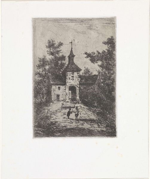 "Toren met klok" is an undated print made by Maria van Hohenzollern-Sigmaringen, a Countess of Flanders. Maria was part of the European aristocracy during a period of immense social change, and as a woman of privilege, her artistic endeavors existed within a unique context. Here we see a clock tower, an architectural element that represents time, order, and control. The Countess's rendering of this structure through the medium of printmaking allows us to consider her position within the societal structures of her time. How did her social standing allow her to engage with artistic expression? Did it allow her to reflect critically on the society in which she lived? Her choice of subject, an old tower, speaks to history, legacy, and the passage of time. It invites us to contemplate the relationship between the personal and the historical, and the ways in which individual identity is shaped by broader social forces.