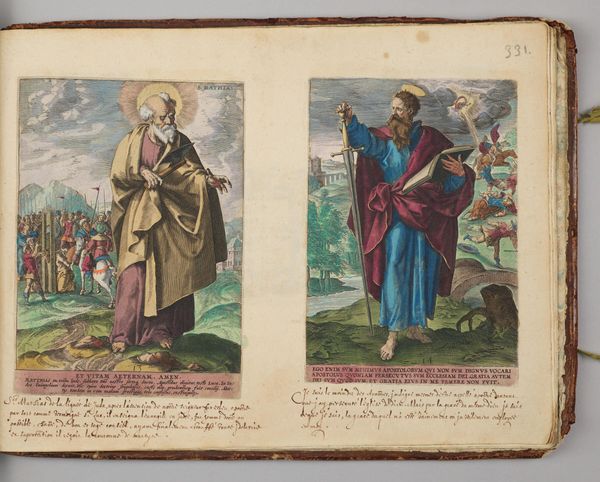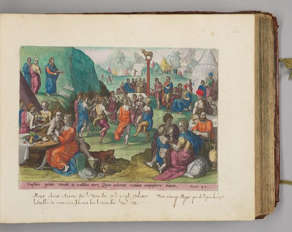 Editor: Here we have Johann Sadeler’s "Moses Showing the Tables of the Law". The printwork feels very grand and theatrical, and I'm curious about its composition, what do you see? Curator: The print excels in its masterful use of line and form. Note the receding planes, established by the meticulous rendering of the figures. The formal arrangement guides our eye to the radiant Moses, at the print’s center. Editor: So, the organization is primarily what strikes you? Curator: Indeed. The piece commands attention through its strategic use of light and shadow, creating a dramatic depth that enhances the narrative. Editor: That's a perspective I hadn't fully considered. Thank you! Curator: My pleasure. It is always rewarding to delve into the formal qualities.