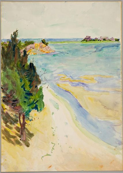 Curator: Joseph Smith’s watercolor, simply titled "Landscape," whispers of serenity. Editor: Yes, the layering of blues and greens evokes a tranquil, almost melancholic, scene. The materiality of the watercolor gives it an airy feel. Curator: I think that we need to look at landscape paintings through a lens of power and privilege. Who has access to these idyllic scenes? And how are they represented? It gives a context to understanding not just the aesthetic of this landscape, but the cultural narratives embedded within it. Editor: I agree. It’s also key to note the material conditions that allowed for its creation. The availability of pigments, paper, the patronage system, all contribute to its existence. Curator: Precisely. It pushes us to consider the social and economic structures that shape artistic production. Editor: Seeing it this way certainly adds depth. Curator: Absolutely. Editor: It has changed how I see Smith's process. Curator: I’m glad.