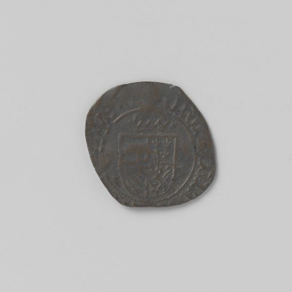 This is a "Halve plak van de Drie Steden," crafted in 1575 by the Drie Steden. The piece is a small, unassuming coin, yet its form speaks volumes. The muted tones and worn texture create an immediate sense of age and history, evoking a sense of mystery. The circular shape, though imperfect due to wear, provides a basic structure upon which symbolic elements are arranged. Lines and shapes, seemingly simple at first glance, suggest deeper meanings when considered in their historical context. The coin's design, with its arrangement of symbols and text, operates as a semiotic system. Each element likely held specific meaning, communicating power, trade relations, or civic identity. The coin's small size and unassuming material belie its function as a potent symbol of economic and political exchange. It prompts questions about how value is assigned and how objects, even small ones, can embody complex cultural codes.