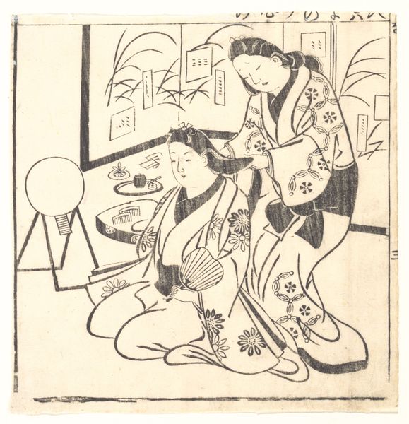 Curator: This is Aubrey Beardsley's etching, "The Rape of the Lock," created in 1896. It's currently held in the collection of the Metropolitan Museum of Art. Editor: My word, it’s bustling! A theatrical flurry of lace, powdered wigs, and… are those impish creatures mingling amongst the elite? Curator: Indeed. Beardsley’s illustration encapsulates the satirical spirit of Alexander Pope’s mock-heroic poem. Note the intricate, almost obsessive detail in the fabrics and the exaggerated stylization of the figures. Semiotically, each flourish seems to represent a certain artifice, a constructed identity within the aristocratic social sphere. Editor: Constructed is putting it mildly! These characters are drowning in artifice, like elaborate cakes. It feels like a fever dream dipped in ink—sensual, a bit wicked, and slightly absurd. I am both captivated and horrified! Curator: The high contrast achieved through the etching process amplifies this effect, wouldn't you agree? It is almost a binary in its stark delineation, yet within this framework, there are elaborate gradations and nuances created by Beardsley’s line work. Editor: It’s true, there’s so much to look at in terms of craft—you see it in the stippling and dense networks of black, punctuated with white gaps… yet I think I keep coming back to the leering faces, their over-the-top fashion...is it a mirror of societal decadence, perhaps? Curator: That interpretation is substantiated through close reading and context of the era in which it was produced, certainly. In Beardsley's application, there is almost a sense of commentary on social affectations and moral structures through visual components like texture, figure, and layout. Editor: Precisely! It seems he holds up this distorted looking glass to expose the follies beneath the glamorous surface. For something static, it leaves me feeling rather uneasy. Curator: An intended response, I presume, to foster an engagement and a level of scrutiny within the audience, so the etching effectively fulfills its design both structurally and functionally. Editor: In essence, "The Rape of the Lock" acts as a provocative and opulent spectacle! A testament to how artistic interpretations transform textual nuances.
