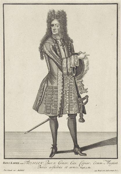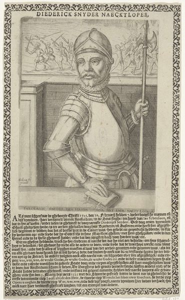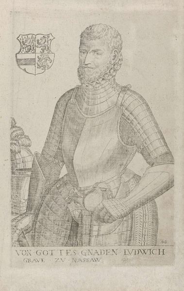Pieter Feddes van Harlingen created this portrait of Willem I, Prince of Orange with engraving. The fine, precise lines are the essence of this printmaking technique. A metal plate, likely copper, was painstakingly incised, filled with ink, and then pressed onto paper, transferring the image. Look closely, and you can see how the cross-hatching of lines defines the form and texture of Willem's armor, creating a sense of depth. The material qualities of the metal plate and the artist's skilled handling of the engraving tools directly influence the print's aesthetic. Engraving was not just a means of artistic expression; it was a crucial method for disseminating information and imagery in the early modern period. Prints like these made portraits accessible to a wider audience, contributing to the construction of public figures. This work challenges traditional distinctions between art and craft, emphasizing the importance of understanding materials, making, and the broader social context in which it was created.