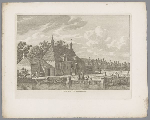Carel Frederik Bendorp created this print of Sloterdijk and the Haarlemmertrekvaart. The work offers a study in contrasts, composed as a balance between the meticulously rendered architecture and the organic forms of the surrounding landscape. The linear precision of the buildings, with their defined edges and structured facades, is set against the softer, more fluid depictions of trees and clouds. The composition draws the eye across the serene canal, using it as a reflective plane that doubles the architectural details and natural elements, effectively questioning the boundary between the real and its reflection. The subdued palette further unifies the scene, inviting contemplation on the interplay of light and shadow. This artistic choice transcends mere representation, prompting us to consider the deeper relationships between structure and nature, order and chaos. The print destabilizes our understanding of space, suggesting that our perceptions are constructions, constantly negotiated through art.