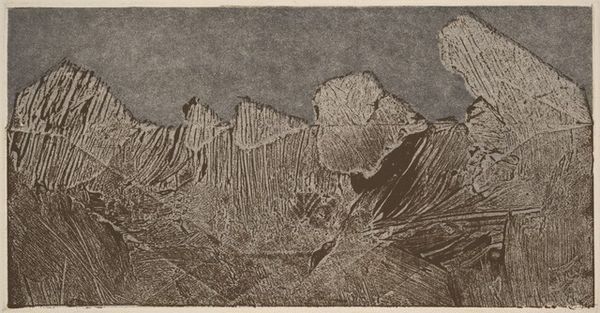 Curator: Immediately, I think… night dive. It's brooding, isn’t it? Makes you hold your breath. Editor: It does. And this M.C. Escher drawing, aptly named "Green Sea", presents an interesting puzzle because it lacks a specific date, but the use of drawing as a medium is very telling. Look closely, and you can see the deliberate process. Curator: Puzzle is right. My eyes keep going to that lighter patch at the top. It almost feels like bioluminescence, a ghostly island forming in the darkness. And what are those holes? It’s strange and alluring… Editor: Notice how the marks vary—horizontal strokes build up a textured mass, likely a representation of deep water, contrasting with tighter, lighter marks. This layered approach to process shows Escher thinking with and through materials. What's also crucial to consider is the paper itself and how that plays into it all... Curator: Thinking with materials... it’s funny because that darkness, that sheer volume of what isn't there...that to me speaks so loudly. It almost drowns out whatever solid forms are fighting to emerge. Editor: Absolutely. The act of creating forms out of this dark ground emphasizes their fragility. Look closely: one sees what could possibly be acrylic on canvas with pastel chalk drawing. Perhaps this work invites questions about the economics of artistic labor. After all, the means and cost to acquire these tools and then the space itself to make such works can be prohibitive. Curator: Do you think he deliberately left it open ended? That rough brush stroke, that sense of incompletion gives the viewer so much freedom to drift into the unknown. Maybe we’re not meant to know exactly what we are seeing. Maybe the point *is* the plunge. Editor: I agree; it creates dialogue, engaging with its lack of resolution is its purpose perhaps...This also highlights how the commodification of even ambiguous art involves intricate dynamics of access, valuation, and power. Curator: You know, viewing it in this way gives the piece even more power. Editor: It reveals an entire process that, ultimately, is still in conversation with us.