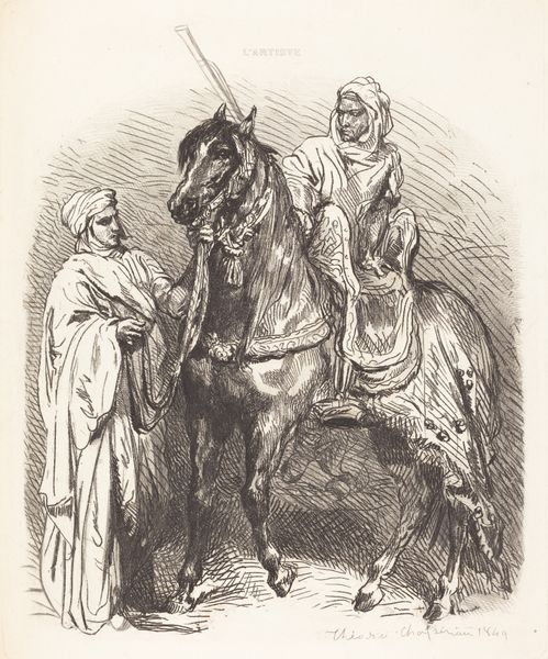 John La Farge created this print, "The Wise Men out of the East," with wood engraving on paper. La Farge, active in the late 19th century, lived in a period marked by significant cultural exchange and, simultaneously, the entrenchment of racial and cultural stereotypes. This work depicts the biblical story of the Magi following the Star of Bethlehem. However, La Farge subtly infuses the scene with an awareness of the complexities of cultural representation. Notice the diverse features and garbs of the wise men, a deliberate choice that moves away from homogenous depictions. The artist engages with the narrative's symbolic potential, reflecting the period's fascination with the "Orient" while also subtly challenging its reduction to stereotype. La Farge, who traveled extensively in Asia and the Pacific, incorporated his observations into his art. His work encourages us to consider how cultural narratives, even those seemingly universal, are shaped by the artist's perspective. How might this depiction challenge or perpetuate certain assumptions about identity and cultural exchange?