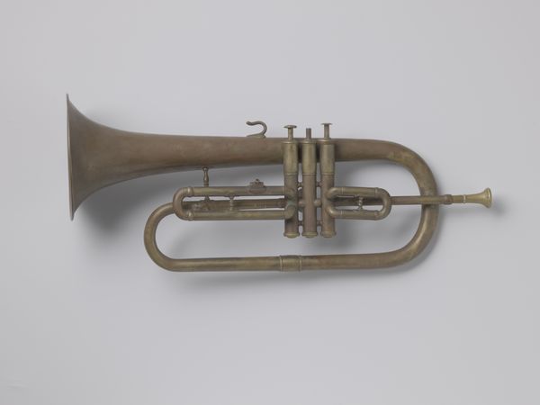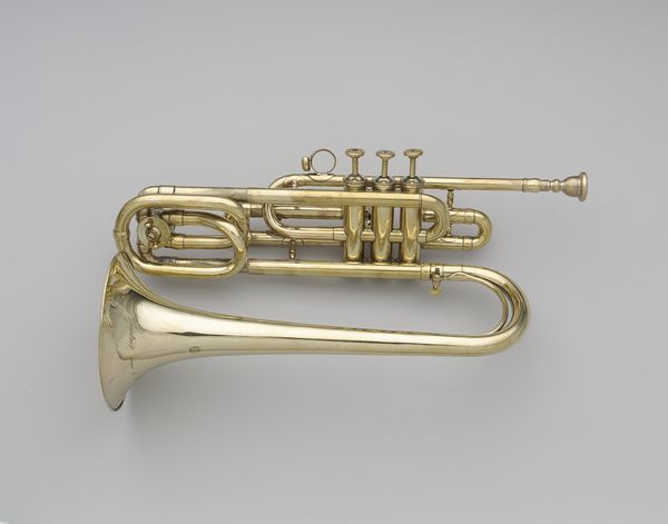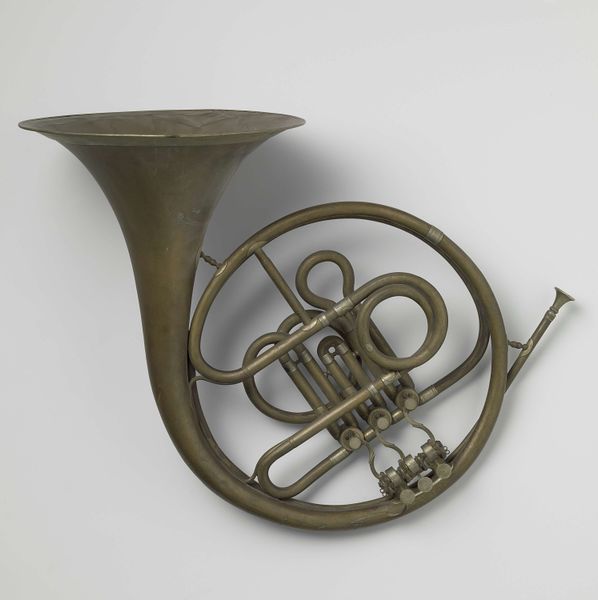 This tenor valve trombone was conceived by Adolphe Sax, the innovative instrument maker, probably in nineteenth-century France. It's fabricated primarily from brass, a metal valued for its acoustic properties and golden hue. Look closely, and you’ll notice the combination of hand-crafting and industrial manufacturing in the details of the instrument. The tubing has been bent, soldered, and polished by hand, yet the valves suggest the precision of machine production. The trombone's form is directly related to its function, but also to the cultural life of nineteenth-century Europe. Musical instruments like this one played a key role in the rise of orchestras and concert halls, supporting a growing population of professional musicians. The production of instruments was tied to larger social issues, involving specialized labor and distribution networks that extended across Europe. Considering the ingenuity and craftsmanship required to make an object like this one allows us to rethink the conventional boundary between craft and industrial design.