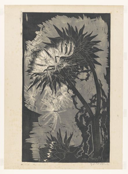 Johannes Frederik Engelbert ten Klooster made this piece, Papoeagraf, with some kind of printmaking technique that allows for rich blacks and sharp contrasts. The whole image is built up of these stark forms, a really interesting take on landscape. The dense, almost impenetrable thicket at the bottom, formed by solid shapes, gives way to the more open structures of the bamboo and the thatched roof above. It’s a real dance of light and dark, solid and void. Then you get to that mountain range in the background, drawn with just a few simple lines, which almost feels like an afterthought, but is actually essential in creating a sense of depth. Ten Klooster’s image reminds me a little of the stark, graphic quality of some of the German Expressionist woodcuts, like those of Erich Heckel, who were also grappling with how to represent nature in a modern, emotionally charged way. Art like this reminds us that seeing is never just about what's in front of us, but about how we choose to frame it.