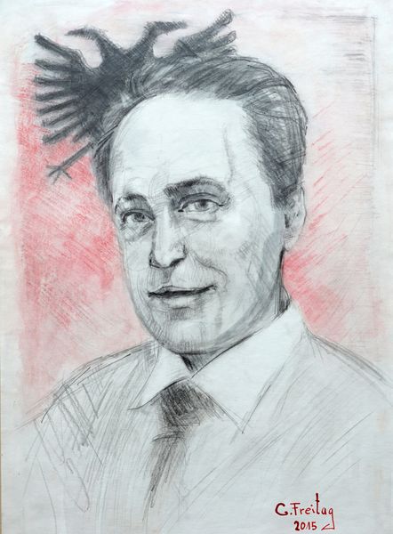Gazmend Freitag created this portrait of Jusuf Gërvalla in 2022 using graphite on paper. Gërvalla was a prominent figure in the Kosovar independence movement during a turbulent period in the former Yugoslavia. Freitag’s portrait captures a sense of Gërvalla’s quiet determination. The soft shading and delicate lines lend the image an introspective quality, inviting us to consider the emotional weight of Gërvalla's political commitments. As an intellectual and activist, Gërvalla straddled multiple worlds, challenging traditional representations and advocating for an alternative narrative of self-determination. Consider how Freitag, as a Kosovar Albanian artist, engages with themes of cultural identity and collective memory in this tribute to Gërvalla. The artwork serves not only as a personal homage but also as a symbol of resistance, reflecting the societal struggles and the enduring spirit of those who fought for recognition and autonomy.