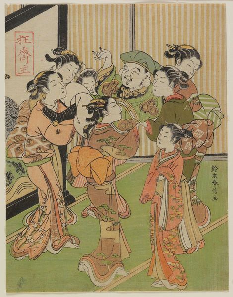 Editor: Here we have Utagawa Kunisada's "Basketry Work: By the Craftsman Ichida Shōshichirō of Naniwa" from 1819, a Japanese woodblock print. It's playful, almost like a caricature of craftsmanship. What do you make of this interesting collection of creatures and characters? Curator: Well, consider this: Utagawa was working within a vibrant, yet rigidly structured society. This print, on one level, appears as a lighthearted piece of ukiyo-e, but I believe it serves a critical function by playfully subverting social hierarchies and expectations. How does the portrayal of the craftsman, perhaps inflated in importance through visual representation, speak to anxieties or ironies of social mobility at the time? Editor: I see what you mean! It's like the artist is using humor to question power structures. The craftsman as a demon-like figure juxtaposed with those very fashionable cats...it’s intriguing! Are there any contemporary theories that can add to our understanding of these caricatures? Curator: Absolutely. Feminist theory and post-colonial studies can reveal nuanced readings within this artwork. How do the exaggerated forms of the figures, both human and animal, challenge established notions of beauty or idealized representations prevalent in other forms of art at the time? Could the animal figures be interpreted as coded commentaries on social performances or the performativity of class distinctions? Editor: That's a fantastic point. It’s not just a fun print, it’s loaded with social commentary. Now I am thinking about the artist’s role and intent, and how the intended audience might have responded. Curator: Exactly! It’s about sparking dialogue on the underlying socio-political landscape and considering art as an activist medium to reveal hidden power dynamics. Editor: That gives me a lot to think about regarding Utagawa’s practice and the context in which he was working. Curator: Me too! I find this piece far more intricate and layered now, realizing its capacity to incite a deeper understanding of art and society, together.