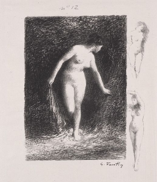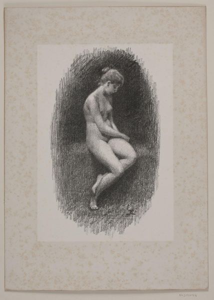 Curator: Looking at Henri Fantin-Latour's "Ariadne," created around 1900 using pencil on paper, I’m immediately struck by its textural complexity. The shading creates a somber, almost ethereal mood. Editor: Yes, it is fascinating how Fantin-Latour approached depictions of the female nude within the academic art establishment. Note that the work's title references classical mythology and connects the image to the broader art historical canon, giving the work added significance in its social and artistic context. Curator: Precisely. Examining the process reveals the artist's intention, focusing on the careful layering of graphite. Fantin-Latour is less interested in creating an illusion of perfect flesh than he is with the materiality of the medium itself, exploiting pencil marks to express movement. Editor: Consider the audience viewing it. Drawings like "Ariadne" were likely consumed within the art market differently from, say, a Salon painting. How did access to these artworks, through reproduction or private viewings, shape ideas about sexuality and representation in the late 19th century? The politics of who got to see this, and under what circumstances, really matter. Curator: Agreed. Fantin-Latour subverts expectations regarding luxury and commodity. This work highlights the skill involved in draftsmanship. By showcasing this in a subject typically rendered with smooth sensuality, we’re made aware of the labor involved, and invited to re-evaluate the status of drawing versus painting at that time. Editor: It’s easy to get lost in the symbolism—a woman, likely Ariadne abandoned, draped, yet vulnerable—but locating the work historically grounds these speculations. Who collected Fantin-Latour’s drawings, and how were these images circulated in a world grappling with changing social mores and the rise of mass media? Curator: Absolutely. Thinking about this work from a materials-based viewpoint deepens my respect for the artistry inherent in simple materials like paper and pencil. It demonstrates the power of seemingly humble means to deliver a potent and evocative experience. Editor: Indeed. By connecting "Ariadne" to its historical environment, we gain a richer understanding of Fantin-Latour's artistic contribution and how it mirrored and shaped cultural narratives surrounding gender, sexuality, and the role of art.