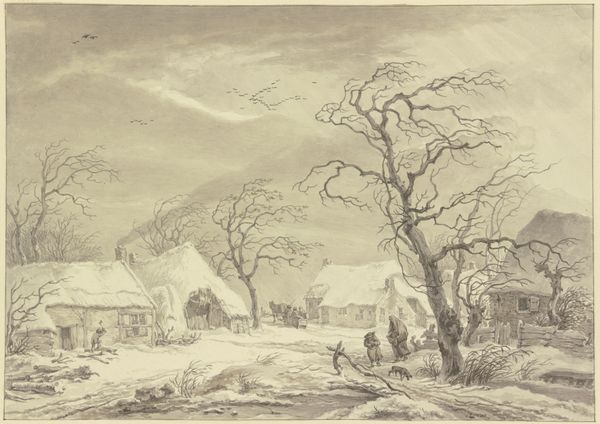 This winter scene, rendered in watercolor by Johannes Franciscus Hoppenbrouwers, captures a woman traversing a snow-covered street. The stark, bare tree in the background, its branches reaching skyward, immediately seizes our attention. The image of the bare tree resonates through time. Consider its distant cousin in classical depictions of Daphne, her transformation into a laurel tree a symbol of metamorphosis and escape. Yet here, the tree stands stoic against the cold, a silent witness to the passage of time. The winter season itself is heavy with symbolism. It appears in countless works as a metaphor for dormancy or hardship, yet there is an undeniable beauty in its stark simplicity, a psychological pull toward introspection and resilience, an echo of ancient seasonal rituals. Note how this symbol has resurfaced, evolved, and taken on new meanings throughout time.