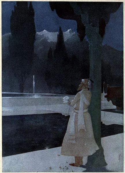 Edmund Dulac, working in the early 20th century, painted this scene from "The Little Mermaid," capturing a moment of profound cultural fascination with tales of transformation and identity. Dulac, an artist of French origin, brings to life the mermaid's liminal state, caught between two worlds. The image reflects a broader anxiety present in the early 20th century, a period marked by shifting social roles and the questioning of traditional identities. The mermaid, perched at the edge of the sea, is the quintessential outsider. She embodies the era’s complex relationship with the feminine ideal – a woman sacrificing her voice and very nature for love. The prince’s orientalist attire invites us to consider his privileged perspective. Is he a rescuer or another obstacle in her path? Dulac's illustration poignantly captures the mermaid’s longing and her tragic choice, mirroring society's often painful negotiation of identity and belonging. It is a reminder of the personal cost of transformation and the inherent desire for acceptance.