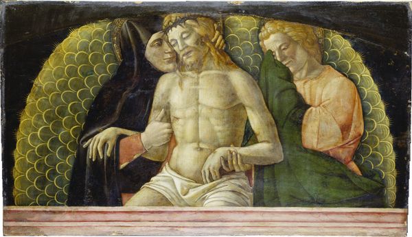 Carlo Crivelli painted this Pietà, we believe, in the second half of the fifteenth century. It is an oil on panel. The Pietà invites us to meditate on the dead Christ. It depicts the Virgin Mary mourning over the body of her son, attended by other holy figures. This representation of death and mourning was very common in the religious culture of the time. Crivelli was working in the Italian region of the Marche. It was a place of fervent faith, but also a place of political instability. How might Crivelli’s image reflect a need to find hope through faith? The meticulous detail and emotional intensity, along with the gold background, are all hallmarks of the artist’s distinctive style. How might such a style challenge the naturalism of the Renaissance that was emerging in Florence at this time? Art historians consult a variety of documents to try to reconstruct the patronage, function, and meanings of works of art like this.