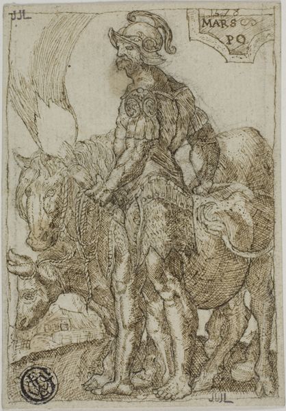 Editor: Here we have Gabriel Salmon's engraving, "The Labors of Hercules: Hercules Capture of the Cretan Bull," created around 1528. The tension is palpable! What do you see in this piece, especially considering its historical context? Curator: What strikes me is the way this engraving encapsulates anxieties about control and domination that permeated 16th-century France. Consider Hercules – a hyper-masculine figure – violently subduing the Cretan Bull. How does this image function within a patriarchal society where power is often asserted through force? Editor: That's a powerful point. I hadn't thought about the gendered implications so directly. Does the medium—the engraving itself—play a role in disseminating this ideology? Curator: Absolutely. Prints, like this one, were incredibly accessible. They circulated widely, embedding these visual narratives of power and submission into the cultural consciousness. Who gets to control the narrative, who is seen as strong and virile, and who is subdued in service of others? Look closely at the figures in the background too -- they reinforce that message, don't you think? Editor: Definitely. They are secondary, less defined and almost anonymous. It feels as though Hercules is both oppressor and performing for the observers around him. Do you think that the French context shaped the meaning differently than, say, an Italian reading? Curator: It's vital to remember France's socio-political landscape. France was emerging from feudalism. The Hercules figure perhaps mirrors anxieties linked to aristocratic rule and inherited authority. What are the contemporary implications of viewing a work such as this today? Editor: This makes me consider the legacy of colonialism, class disparity, and so much of today's media representations of men and power and virility... I learned a lot in only a few moments. Curator: As did I. These older artworks provide potent historical examples of themes that endure, prompting a much-needed re-evaluation of those social constructs today.