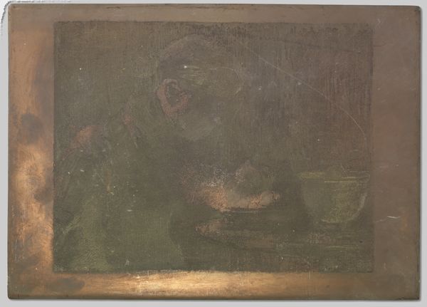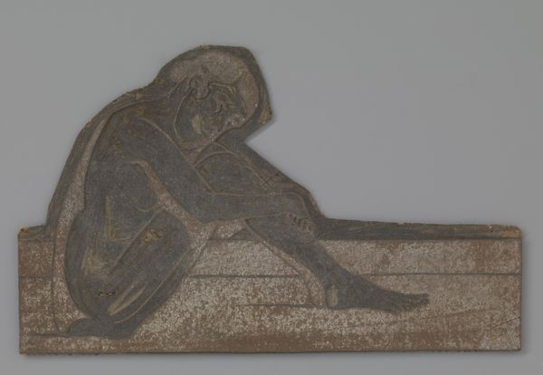 This small panel shows a seated nude woman by Reinier Willem Petrus de Vries. There's something quite lovely about the muted palette of grays and browns here, a real sense of the artist working within a limited range of colors, almost like a painterly form of printmaking. The texture of the piece is intriguing. You can see and feel the surface, as if the image has been gently pressed into the material. There's a quiet intimacy in the way the woman is depicted. Her pose is relaxed, self-contained, almost introspective. Look at the way her hands are clasped around her legs. It's a simple gesture, but it speaks volumes about her state of mind. The shadow around her body makes her stand out against the flat background. De Vries and Paula Modersohn-Becker, come to mind, with her earthy palette and interest in the body. But in the end, this work has its own distinct voice. It's a reminder that art is always an ongoing conversation, a dialogue between artists across time and space.