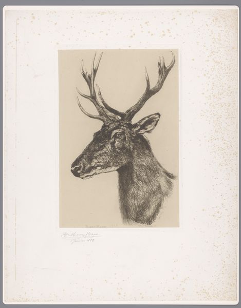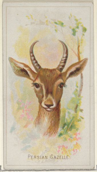 Editor: This is "Virginian Deer" from 1888, made by Allen & Ginter as part of their Wild Animals of the World series. It looks like a print, maybe a coloured pencil drawing. I’m immediately struck by the contrast between the detail in the deer and the more impressionistic background. What story does this image tell, in your opinion? Curator: A story, eh? Well, for me, this little gem evokes a longing for simpler times. Back when collecting cigarette cards was a perfectly respectable hobby. Can you imagine, swapping these vibrant, pocket-sized portals to far-off lands and creatures? The deer itself, so meticulously rendered, becomes a symbol of untamed beauty, yet contained and commodified within this frame. Tell me, does it make you ponder about humanity's relationship with nature, then and now? Editor: Absolutely! It's almost like a captured moment of wilderness, preserved for… well, for cigarette smokers! I see how the act of collecting these cards also shaped perceptions of these animals. Did people learn about wildlife from these cards? Curator: I wager many did! These cards served as miniature encyclopedias. Think about it—access to images of exotic animals would have been rare for many people at the time. But it does give you pause, doesn't it? This juxtaposition of art, commerce, and our yearning to understand the wild. Even though these cards were advertisements, they speak volumes. Editor: It’s interesting to consider it in terms of cultural context. Curator: Exactly. The deer, isolated against that soft backdrop, makes you want to create your own wilderness right in the palm of your hand. A little bit ironic if you consider that's just the amount of space it originally occupied! Editor: I hadn’t thought of it that way! Thanks, it’s fascinating to consider the multiple layers of meaning in this image. Curator: It's been a pleasure, indeed. Keeps my artistic soul burning bright, it does!