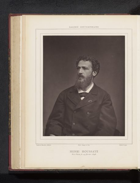 Curator: Here at the Rijksmuseum, we have "Portret van Eugène Spuller" by Etienne Carjat, captured before 1880, a gelatin-silver print offering a glimpse into the 19th century. Editor: It strikes me immediately how posed yet introspective it feels. He's clearly facing something, but there’s a quiet resolve in his expression. It almost hints at a narrative. Curator: Carjat, known for his portraits of prominent figures, certainly understood the power of image. Spuller was a notable politician, and Carjat likely intended to convey a sense of his authority. The controlled lighting, the formal attire—all serve to create a specific persona for public consumption. Editor: I wonder how much Spuller had a hand in crafting that persona? It's not just a picture; it is a representation of power. Thinking about how marginalized communities at that time lacked such representational agency really contextualizes the privilege embedded in this seemingly straightforward image. Curator: Absolutely. These portraits helped to solidify the social and political power structures. Access to photography and its distribution was highly controlled. Museums play a critical role here, we should carefully contextualize who gets remembered and how. Editor: Looking at his confident pose, I feel the stark absence of other voices and perspectives from that era. Acknowledging that absence becomes crucial. We must avoid unintentionally perpetuating a biased view of history through these images. Curator: Indeed, by engaging with these absences, we create a more complete, complex, and equitable picture of history. It calls for a continuous process of critical examination and active efforts to amplify previously marginalized voices. Editor: Right, it is about responsibly interrogating our inherited histories, to become actively anti-racist, feminist and to address these imbalances. It becomes not just about understanding the artwork, but also actively understanding the history of the world surrounding this artwork. Curator: Well said. Understanding portraits like this gives us insight not only into the individuals, but into how entire power structures and ideas were projected and upheld in their time, which shapes so much still. Editor: Right! So that the next time someone sees a similar work they have the critical framework to reflect on the values embedded in our historical institutions, collections, and modes of representation.