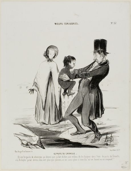 Honoré Daumier created this lithograph, "A Dinner at Véry's," as part of his series Les Beaux Jours De La Vie, which translates to “The Beautiful Days of Life.” Daumier was a master of social commentary, and this print encapsulates the complex relationship between personal identity and economic status in 19th-century Paris. Here, we see a bourgeois gentleman, dining alone, seemingly trying to convince himself, and perhaps the waiter, of his contentment. The text below the image reveals a man grappling with his financial circumstances, as he delights over the fact that he still has 60 centimes left. Daumier uses the setting of Véry's, a fancy restaurant, to highlight the man's social aspirations, while hinting at his economic fragility. The image prompts us to consider how deeply personal experiences are shaped by societal pressures and economic realities. "The Beautiful Days of Life" series, in general, is a mirror reflecting the daily struggles and quiet triumphs of a society navigating rapid change.