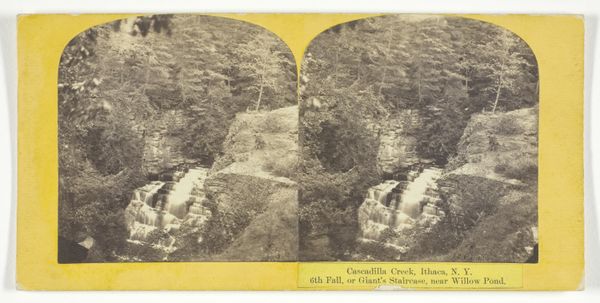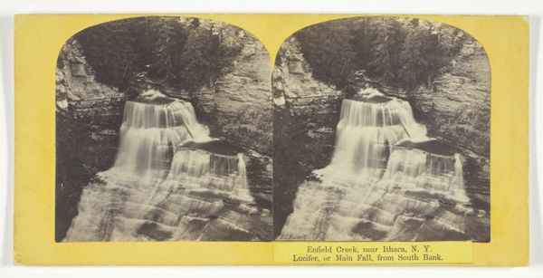 This stereograph, "Enfield Creek, near Ithaca, N.Y. 2d Fall, Lower Ravine," presents dual views of a natural scene, captured by J.C. Burritt. The monochromatic palette and symmetrical composition invite us to explore the photographic representation of space and depth. The stereograph invites the viewer to engage with the photograph not merely as a flat image, but as a constructed, three-dimensional space. The structure of the image compels us to decode the relationship between the two perspectives, thus enhancing our perception, challenging our understanding of representation, and pushing the boundaries of visual experience. The photograph’s formal qualities extend beyond mere visual aesthetics, inviting a broader consideration of how we perceive, interpret, and construct meaning from the world around us.
