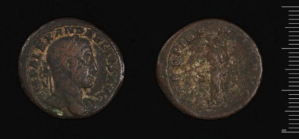 Editor: This is a Follis of Constantine I, likely made in Trier. It’s worn, but you can still make out the figure's profile on one side. What can we tell about the social context from this coin? Curator: Well, the material itself speaks volumes. Bronze, a relatively common metal, signals widespread production and circulation. Consider the labor involved – from mining the ore to striking each individual coin. Editor: So the value isn't just monetary, but also tied to the work that went into it? Curator: Precisely. The coin embodies not just imperial power, but also the vast network of laborers and material resources that sustained that power. We must consider the economic and social impact such mass production had. Editor: That's a fascinating way to look at it. Curator: Indeed. Examining the coin through a materialist lens reveals much more than just its face value.