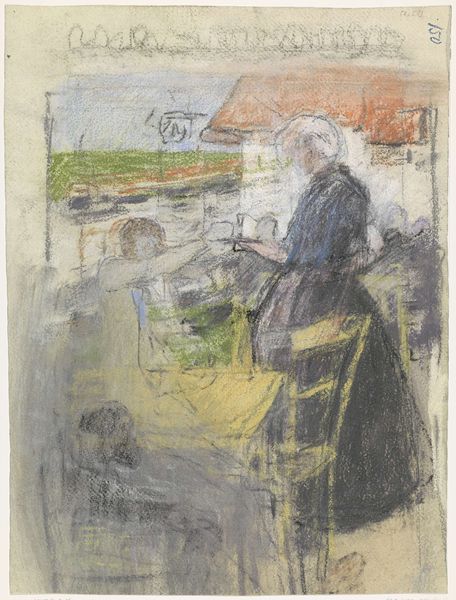Albert Neuhuys created this drawing of a family scene inside a modest dwelling using charcoal on paper. Charcoal is elemental, and in this case, its loose application creates an image that feels immediate, like a fleeting glimpse into a private world. Neuhuys’s sketchiness is effective, yet deceptively simple. The material’s inherent qualities of light and dark create a moody atmosphere, while the texture of the charcoal adds depth. The rough strokes invite us to consider the scene’s social context, as well as the labor and simplicity of rural life, where the family is captured in a moment of quiet repose, a tableau of humble domesticity. Neuhuys engaged with traditions of genre painting while elevating the everyday and the working classes to artistic subjects. His choice of charcoal and sketchy technique, rather than a more polished medium, further emphasizes the naturalness and unadorned quality of his subject. Ultimately, the material and method speak volumes here, conveying a sense of authenticity beyond the purely visual.