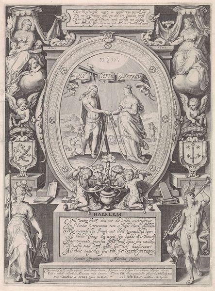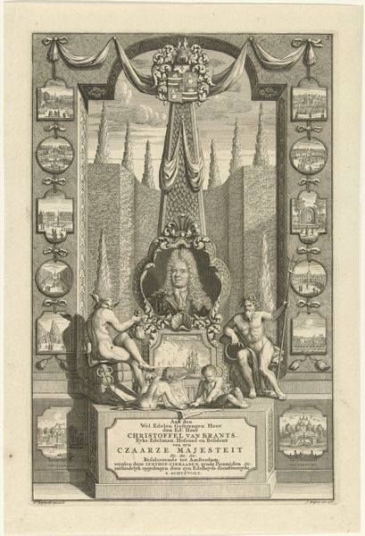 This portrait of Willem V, Prince of Orange-Nassau, presents us with a fascinating array of symbols. A central profile bust is framed by a wreath and topped by the word “Oranje” in radiant sunbeams. On either side, allegorical figures stand guard: Justice, with her scales and sword, and another woman holding a cross. These figures embody the virtues associated with leadership and divine favor. Justice is an ancient symbol, from the Egyptian goddess Ma’at to the classical Roman Justitia; it is a timeless longing for balance and order, yet here she stands blindfolded, perhaps hinting at the complexities of governance. The wreath around Willem’s portrait echoes the classical laurel wreath, awarded to victors and emperors. Its presence speaks to the enduring human desire to immortalize figures of power, a theme that recurs throughout art history. These symbols collectively create an emotional appeal, linking Willem to ideas of justice, divinity, and triumph, engaging the viewer on a subconscious level with the profound impact of collective memory.