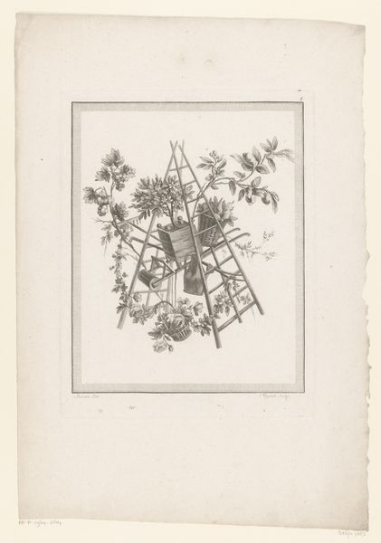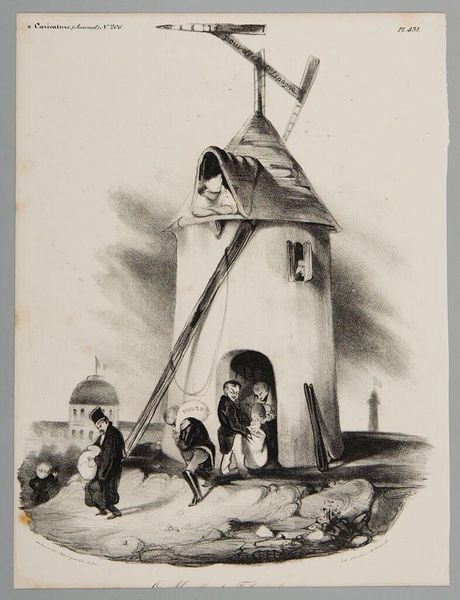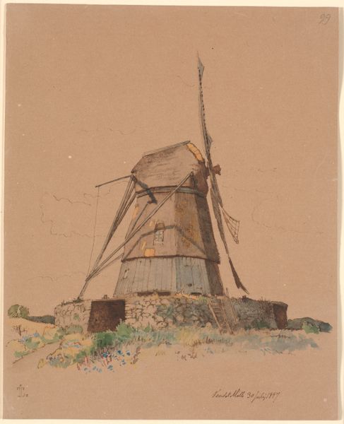Curator: Ah, "Landschap met duiventil," or "Landscape with Dovecote," created by Paulus Lauters between 1838 and 1839. A little gem from the Rijksmuseum's collection. Editor: It's incredibly serene, in a slightly melancholy way. Just that solitary structure against the hazy landscape…feels almost haunted. Curator: Haunted perhaps by the absence of doves? It's fascinating how Lauters, working within a Realist tradition, highlights this dovecote. These structures were, of course, potent symbols of rural economy and seigneurial rights. Landowners would keep doves, both for their meat and for their valuable dung, a fertilizer. Editor: So it’s not just a quaint detail then? It's about power, agriculture, social structure...it gives me that feeling, definitely. The way it’s almost precariously balanced on that pole – a symbol on shaky ground, maybe? Curator: Indeed! Lauters wasn't simply painting pretty pictures. He was engaging with contemporary debates about land ownership, the decline of feudalism, the changing rural landscape due to increasing industrialisation... The precision in his ink drawing is rather striking. Editor: Yes! And those subtle gradations…The paper has aged to a beautiful sepia, but those lines are crisp. Curator: He’s playing with a tonal palette to create depth, despite the relative spareness. Note too, the slightly sunken positioning of the dovecote on the horizon line; a very calculated decision! Editor: Right. Almost a whisper, as if it’s disappearing into memory…It feels so relevant. We are increasingly aware of the impacts of land mismanagement and the legacies of how resources were distributed – or hoarded. Curator: A beautiful reminder, perhaps, that art is more often about what remains unsaid than what's explicitly shown. The way the commonplace becomes the carrier of history. Editor: Absolutely. It takes the ordinary to make the strange!