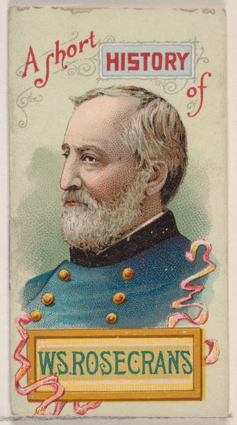 Curator: This portrait, titled "A Short History of General George Gordon Meade," comes from an 1888 series of booklets inserted into Duke brand cigarettes. Editor: My first thought? Those rosy cheeks! They're a little jarring against the military garb, aren’t they? Almost clownish, yet he seems to wear them with steely-eyed seriousness. Curator: They're rather a caricature, intended as one of many collected in albums--miniature portraits designed to promote cigarette consumption. The portraits offer up almost baseball card-like collectability, printed using colour pencil. One has to wonder at the audience. Who bought them? And who made them? Editor: It’s fascinating to consider these within the landscape of industrial capitalism and emergent consumer culture. How different is this "art," really, from propaganda? How far does that reach into consumer psychology and marketing through portraits today? Curator: Yes, precisely! The labour invested in each tiny image… to flatter not only the general, but, bizarrely, the consumer by association. The paper itself speaks volumes, given its purpose—meant to be crumpled, smoked, disposed of after brief enjoyment. Ephemeral, but meticulously crafted to perpetuate a certain ideal, you know? Editor: It really underscores how materials and means determine our interpretation. Take it out of that context, blow it up and frame it, and suddenly you have... what? Commentary on the human cost of war and of manufacturing? The art almost screams *labor* to me! Curator: Maybe the rosy cheeks are less a gentle glow and more a blush, perhaps of shame that we could elevate them to these roles, as he stares accusingly down upon the viewer through time itself! Editor: Perhaps you’re right, Artist! From collectible propaganda to commentary—the context does shape the narrative powerfully. Curator: In miniature format as they are, in a large series, it feels quite personal that we may question the entire process of consumption from 1888 until today... Editor: Quite so, it is humbling indeed, perhaps now I should try to find the full set!
