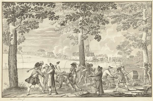 Editor: This is Jurriaan Andriessen's pen and ink drawing, "Laenas trekt een cirkel rond Antiochus IV Epiphanes in het zand," made sometime between 1752 and 1819. It's quite detailed for a drawing, almost like a quick sketch for a larger history painting. How do you interpret this work within its historical context? Curator: It's tempting to see this drawing through the lens of power and resistance. Laenas' act of drawing a circle, demanding an answer from Antiochus within its confines, becomes a powerful metaphor. Considering the broader narratives of Roman expansionism and the subjugation of Hellenistic kingdoms, we might ask: how does this image challenge or reinforce colonial power dynamics? Editor: That's fascinating! I hadn't thought about it in terms of colonialism. So, the act itself is a challenge? Curator: Precisely. The drawing signifies not only political boundaries, but social and ideological ones as well. The seemingly simple act contains layers of resistance and challenges of Roman imperial authority. Where do we locate these acts of challenge? Are they personal or deeply woven into the cultural climate of the time? Editor: It makes me think about more recent protests where people create symbolic boundaries or occupy spaces to make a point. Curator: Exactly! This piece resonates across centuries. Do you see parallels in contemporary art where artists use similar strategies to question authority and disrupt power structures? Editor: Well, thinking about performance art, I'm reminded of artists who use their bodies to create boundaries. Curator: Absolutely. How does Andriessen's choice of medium—the immediacy of ink—contribute to the sense of urgency and confrontation depicted in the scene? Does it invite the viewer into a direct and immediate relationship with power dynamics? Editor: It does feel immediate. More so than an oil painting of the same scene, I think. Thank you. I'll definitely look at it with these perspectives in mind! Curator: Wonderful. Seeing the piece through a contemporary, activist lens, focusing on these enduring dynamics of resistance, enriches our understanding of both the past and present.